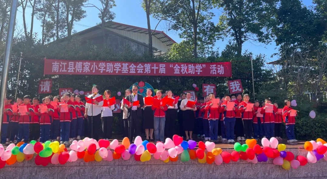 10月23日,南江傅家小學基金會第十屆“金秋助學”活動舉行。南江縣委常委、宣傳部部長吳城蓉,南江縣教科體局黨組書記、局長陳小軍等領導參加活動。巴商總會會長、傅家小學助學基金會理事長、集團董事長趙思儉等愛心人士共30余人參加活動。